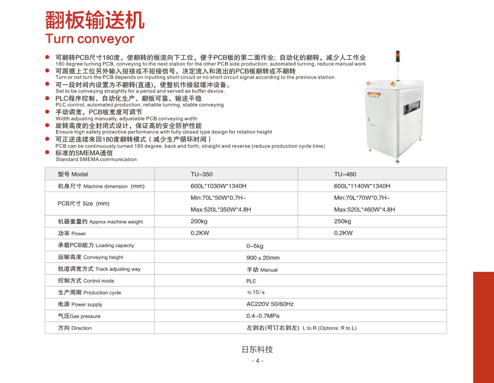 可翻轉(zhuǎn)PCB尺寸180度, 使翻轉(zhuǎn)的板流向下工位, 便于PCB板的第二面作業(yè); 自動(dòng)化的翻轉(zhuǎn), 減少人工作業(yè);
