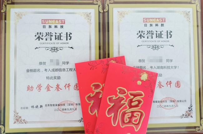 為深入貫徹落實公司“共創、共享、共承、共傳”的價值觀,踐行公司在關愛員工、促進家庭福祉方面的堅定承諾,公司自 2022年起設立“員工子女助學金” ,為當年度考上一本及以上院校的員工子女進行一次性獎勵發放。 2024年09月09日上午11:00,2024年度員工子女助學金頒獎在A棟五樓一號會議室召開。