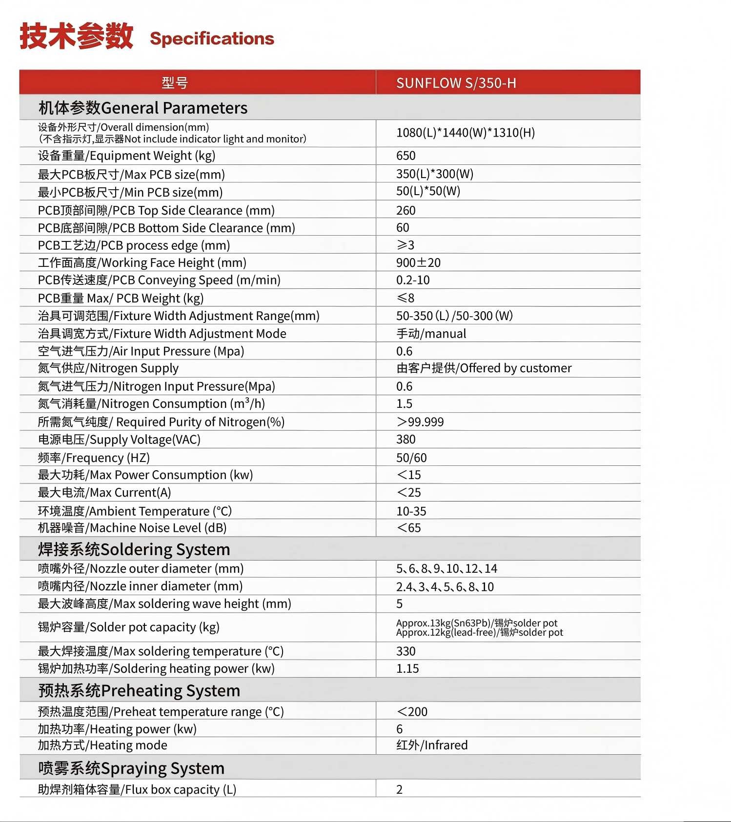 預(yù)熱系統(tǒng):紅外可分區(qū)預(yù)熱,節(jié)省能耗,溫度控制采用PID方式,溫控精度達(dá)到±2℃;