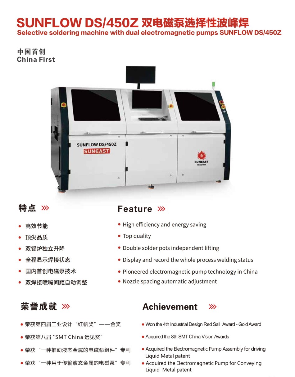 | 國內(nèi)首創(chuàng)電磁泵技術(shù),雙錫爐獨立升降; | 高效節(jié)能,頂尖品質(zhì); |