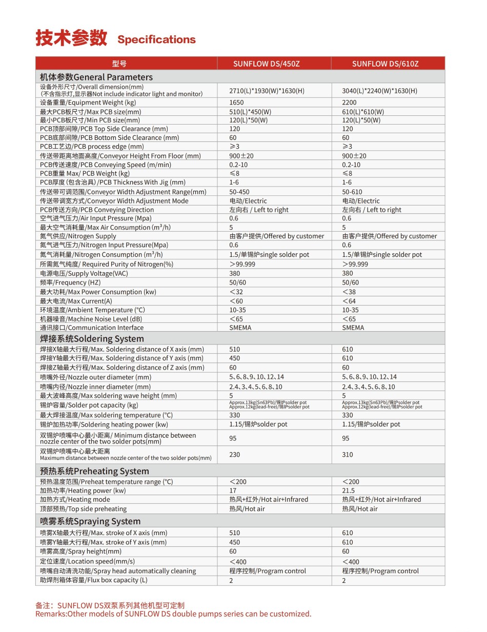 | 雙錫爐噴嘴中心最小距離(mm) | 95 | 95 |
