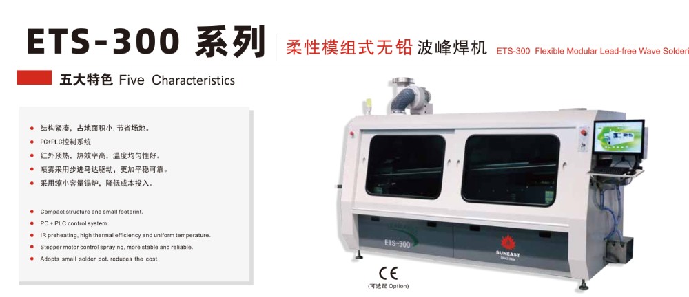 ●PC+PLC控制系統, Windows 7操作系統, 中/英文操作界面, 工藝曲線/數據自動存儲功能, 助焊劑液面過低過高報警; 錫液面過低報警;